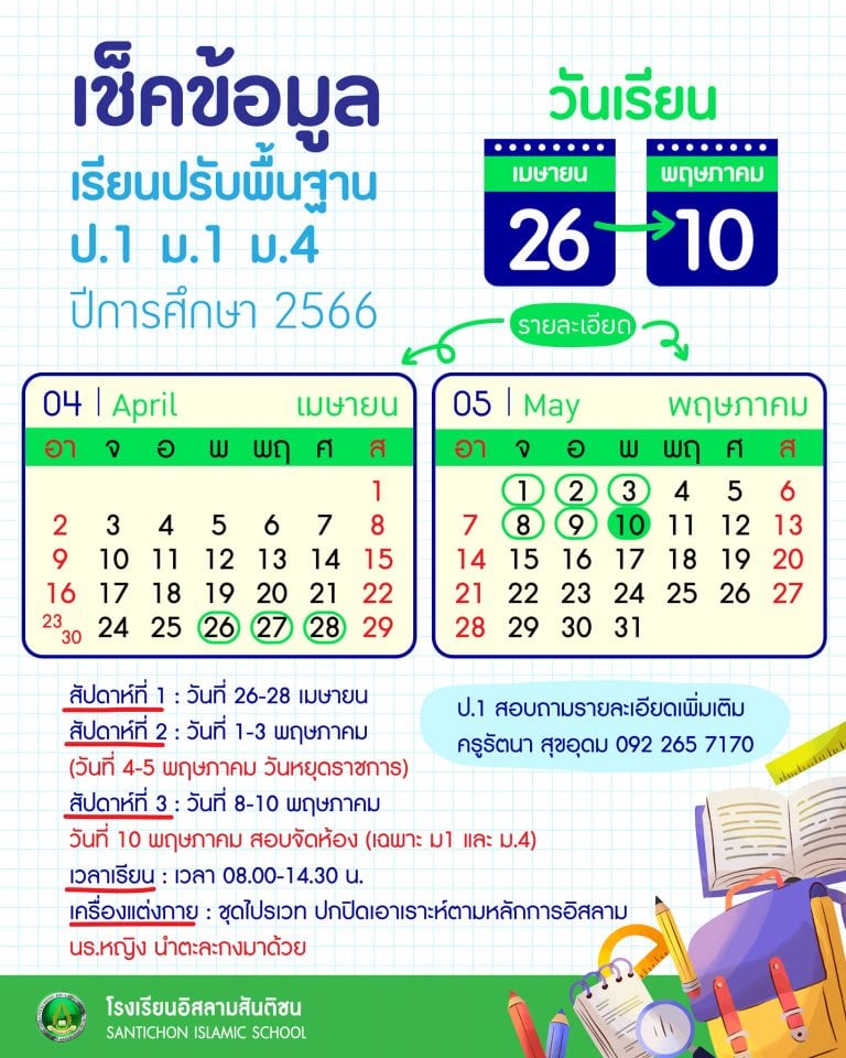 ตารางเรียนปรับพื้นฐาน ป.1 ม.1 และ ม.4